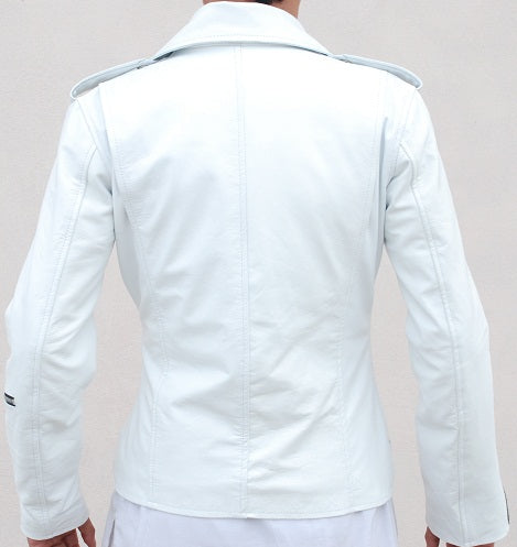Women’s White Leather Biker Jacket – Stylish Slim Fit Motorcycle Jacket